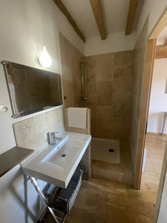 The gite has 3 bedrooms, one is on the open mezzanine over the lounge. A small wrought iron staircase leads to 2 attic bedrooms, each with their own bathrooms and toilet.