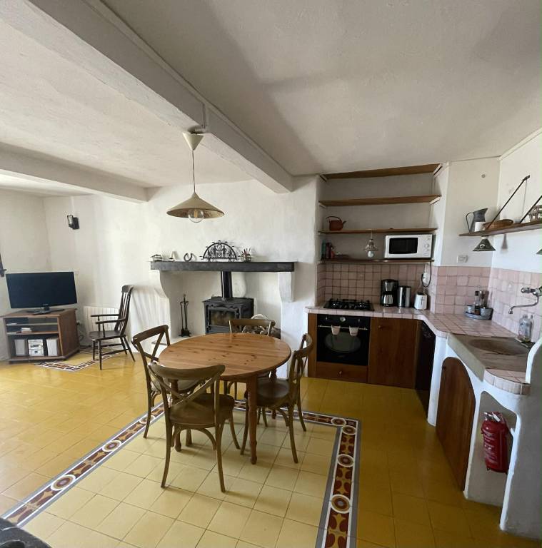 Cuisine / salle à manger entièrement équipée avec poêle à bois.