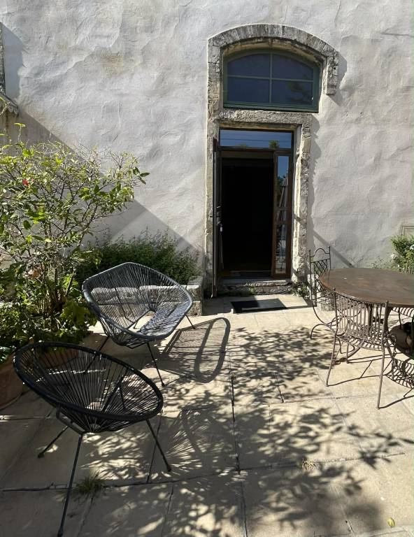 It is located on the first floor but you have your space with garden furniture in the courtyard of the old abbey.